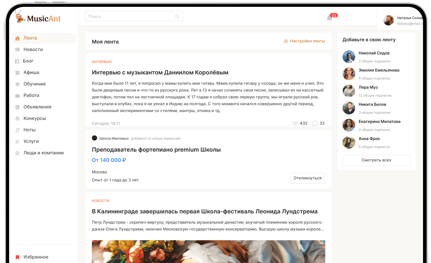 Заказчик — дирижёр Алексей Репников, главный дирижёр и художественный руководитель Псковского губернаторского симфонического оркестра, приглашённый дирижёр Большого театра. Он пришёл к нам со своим опытом и проблемами, с которыми сталкиваются академические музыканты. Мы стали изучать их более глубже: нам важно было убедиться, что эти боли и потребности действительно разделяет аудитория будущих пользователей